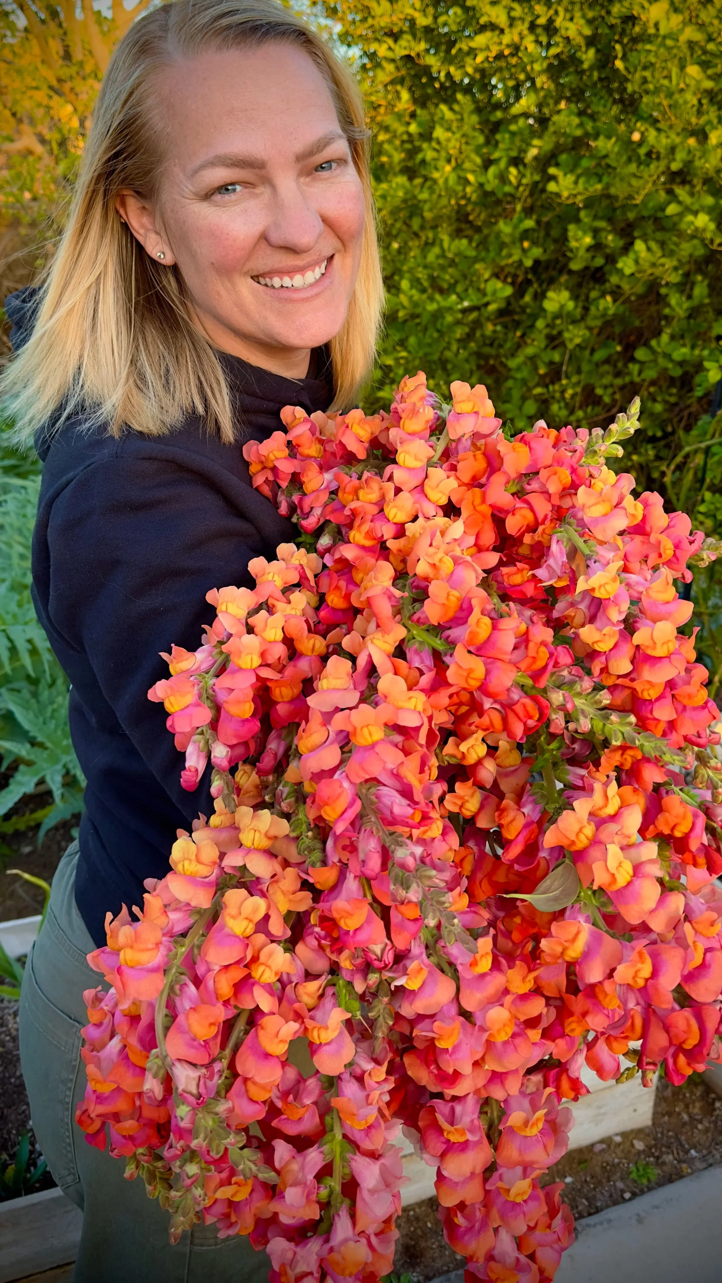 Kristin has been growing food, fruit trees, herbs, and flowers on a half-acre (or less) for the last 22 years here in Arizona. This year, she has expanded by adding 9 acres of high elevation farmland! So you’ll see her involved as more of a market volunteer than a grower this year while she’s planting and building on the new acreage! Building is not new to her: with a design degree from Kansas State and trained in Permaculture, Kristin lays out growing spaces in a regenerative way, utilizing guilds of fruit trees and forest garden type plantings. She grows without using any pesticides or herbicides, and preserves the harvests from her farm to feed her family and share with friends. When time allows, she will offer consultations for edible landscape designs and even occasionally do a full design, but with her son in sports and the farm building, it might be a while before those can be added back into the schedule! She is honored to be a part of the floral community, coming together to build this collective. From years of wishes and whispers, to becoming official, to maturing in market and growth, the Arizona Flower Collective is so special to Kristin and she cannot wait to bring new varieties to the market soon!