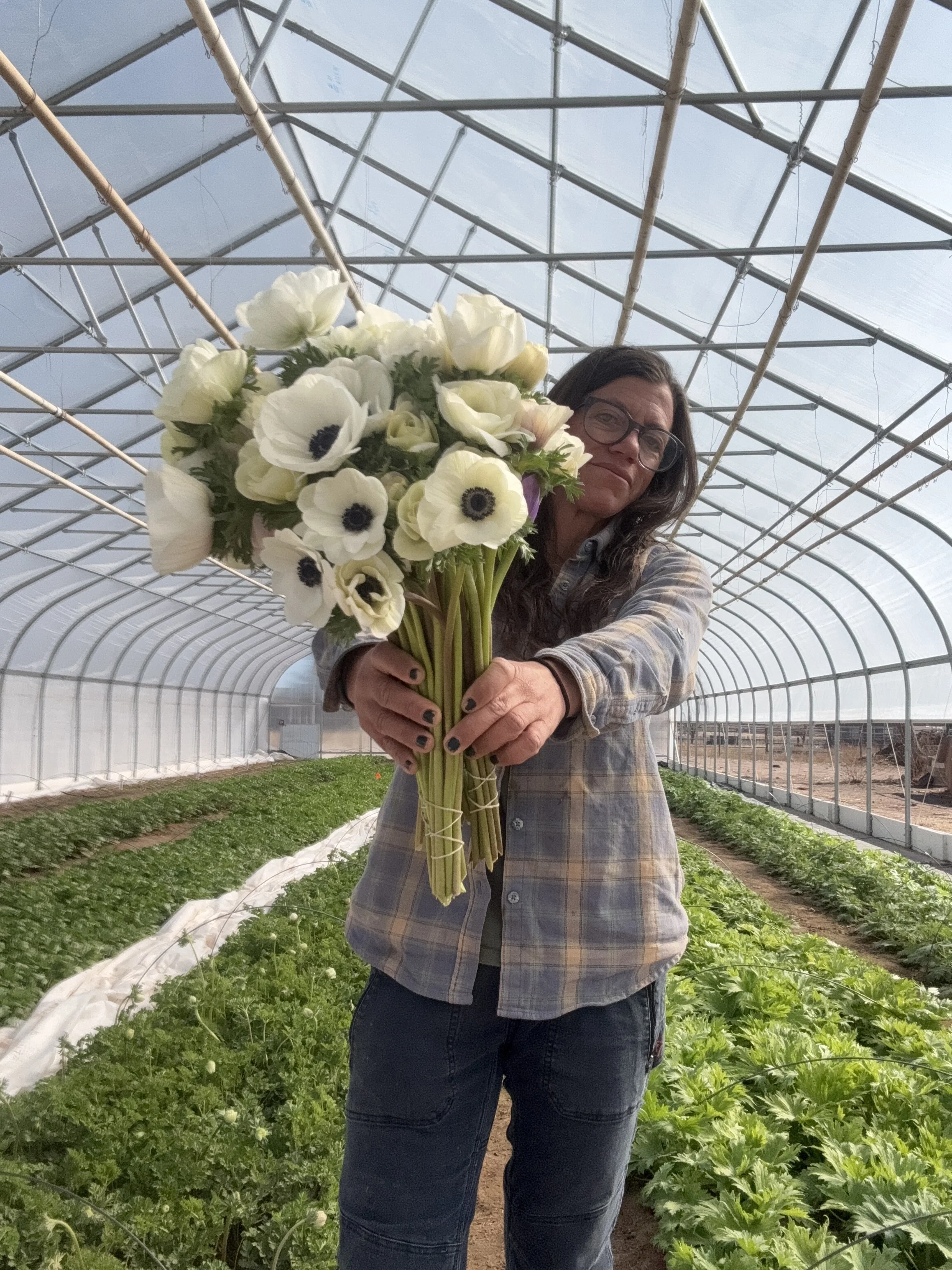 Shanti began growing flowers over ten years ago and has slowly transitioned more of the farm's production from vegetables to flowers. She helped launch the Arizona Flower Collective along with a dedicated group of flower supporters. She served for 6 years on the board of the Association of Specialty Cut Flower Growers (a national trade organization), and for many years on the Prescott Farmers Market and Yavapai County Cooperative Extension boards. Shanti is passionate about sustainability, on-farm research and farm resiliency. She is currently working on collaborative grant projects in soil health, cover cropping, and farm profitability.